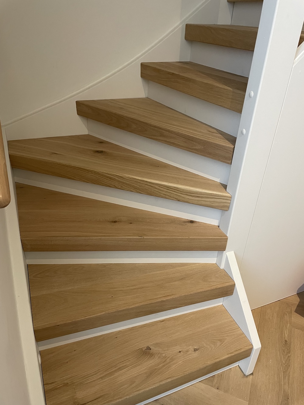 "Elk project getuigt van vakmanschap, precisie en oog voor detail. Laat je inspireren door onze realisaties en ontdek hoe een traprenovatie met overzettreden jouw interieur een frisse, hoogwaardige uitstraling kan geven."